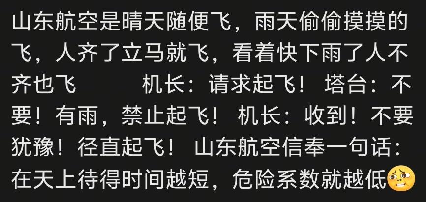 你们可能不知道,山航为了省培训经费,飞行员都是招的退役空军,要不是为了安全,油门能踩到底。